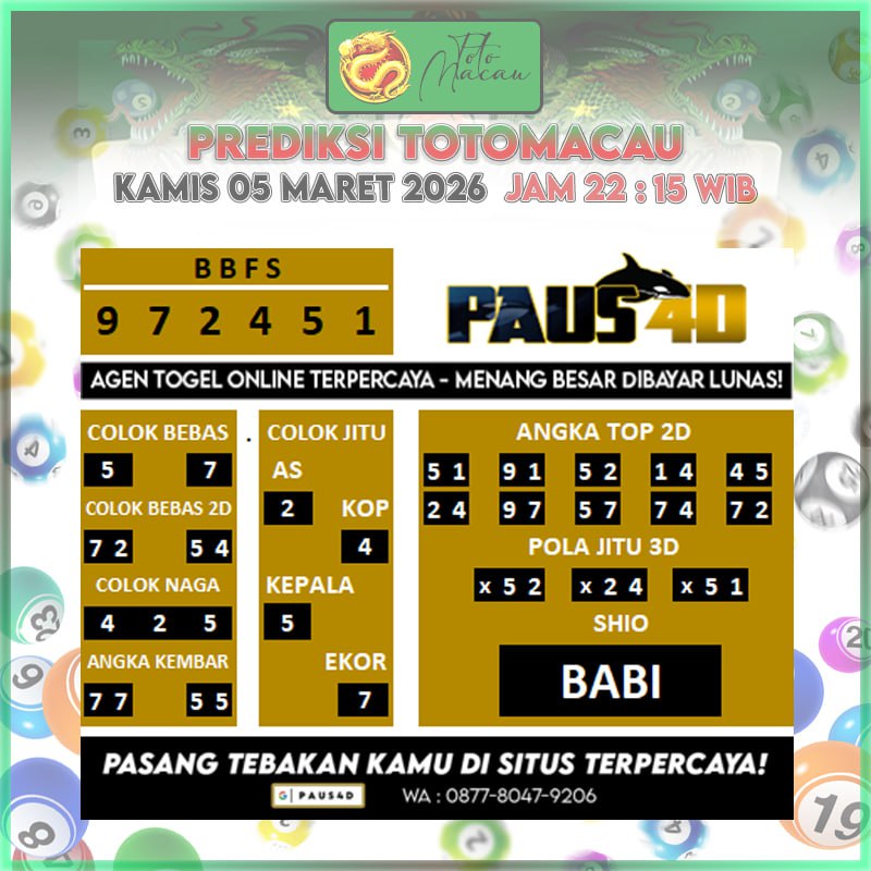 Prediksi Totomacau Hari Ini 05 Maret2026