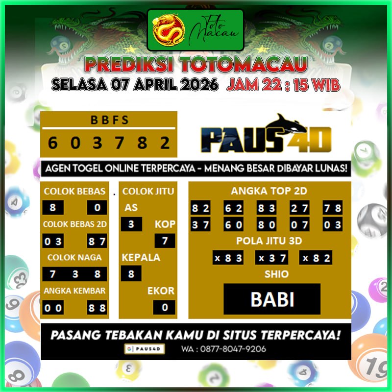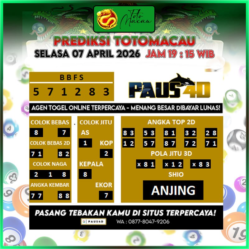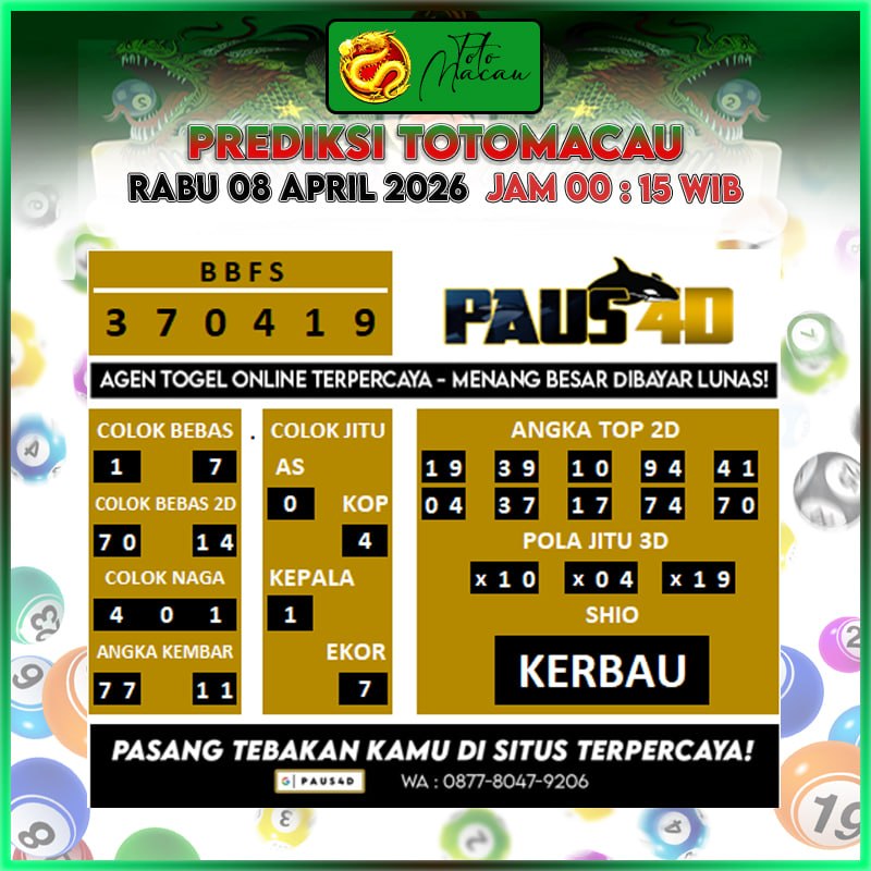 Sebagai situs yang menyediakan Prediksi Macau Jp untuk Togel Totomacau hari ini. kami juga memberikan saran kepada para pengguna, agar berhati-hati dalam memilih sumber prediksi macau. Di samping itu, banyak situs palsu yang beredar di internet, dan hanya memberikan ramalan togel macau tanpa dasar yang kuat.