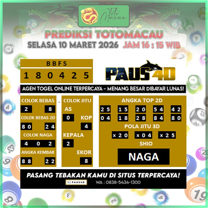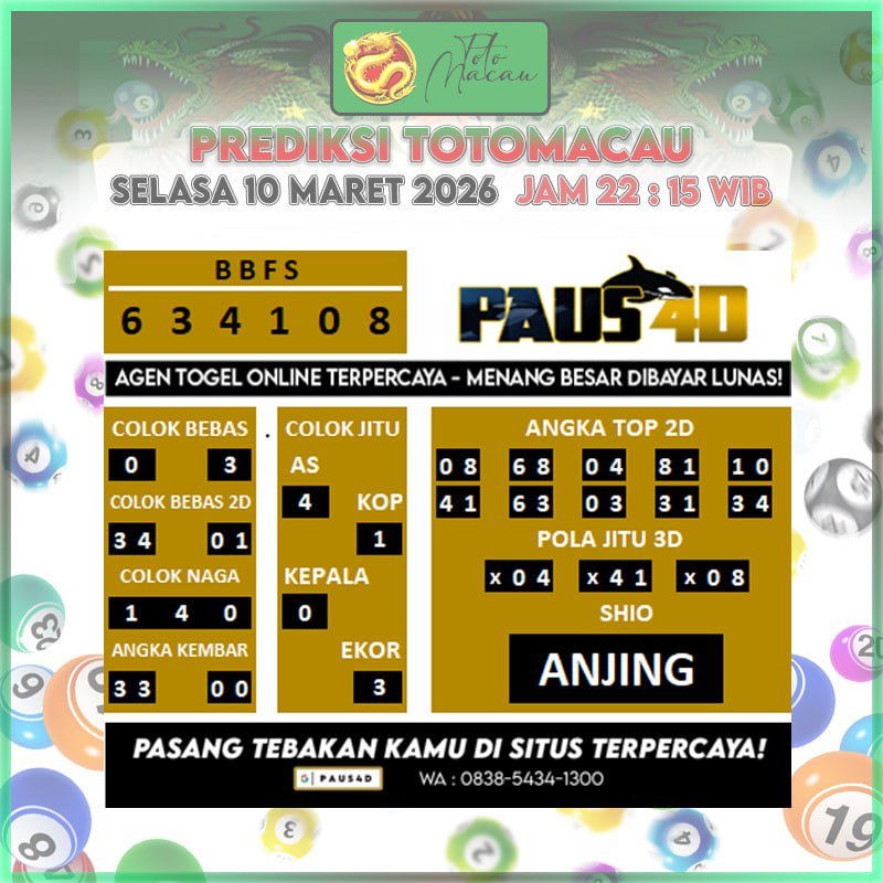 Prediksi Totomacau Hari Ini 10 Maret2026