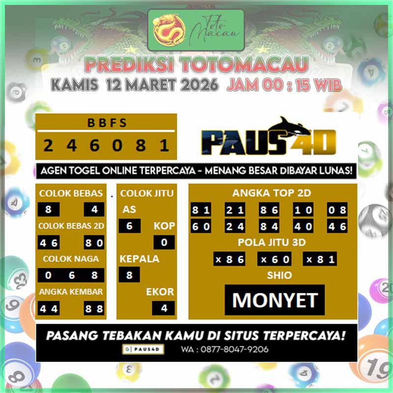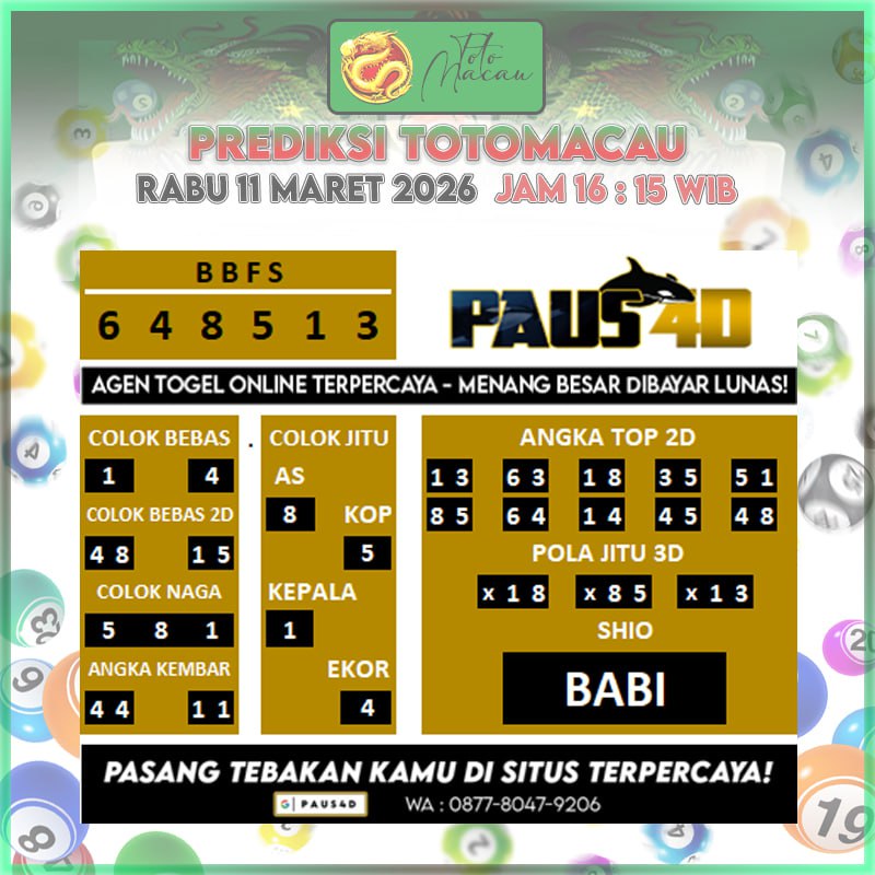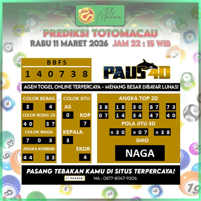Prediksi Totomacau Jitu Hari Ini | PAUS4D 11 Maret 2026