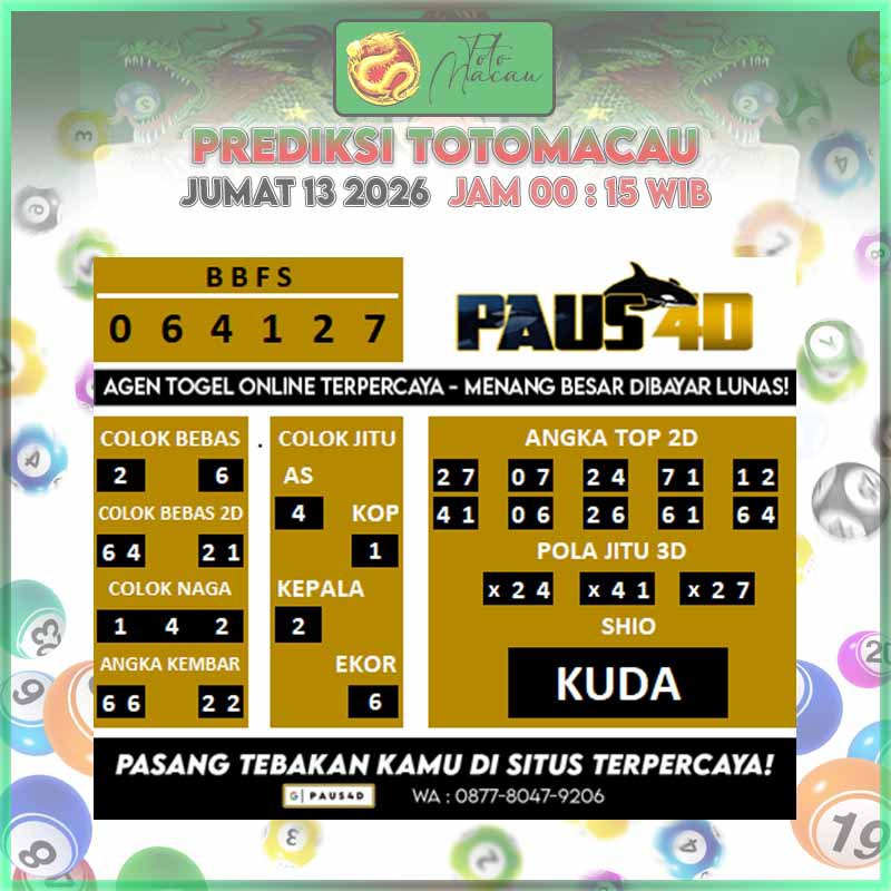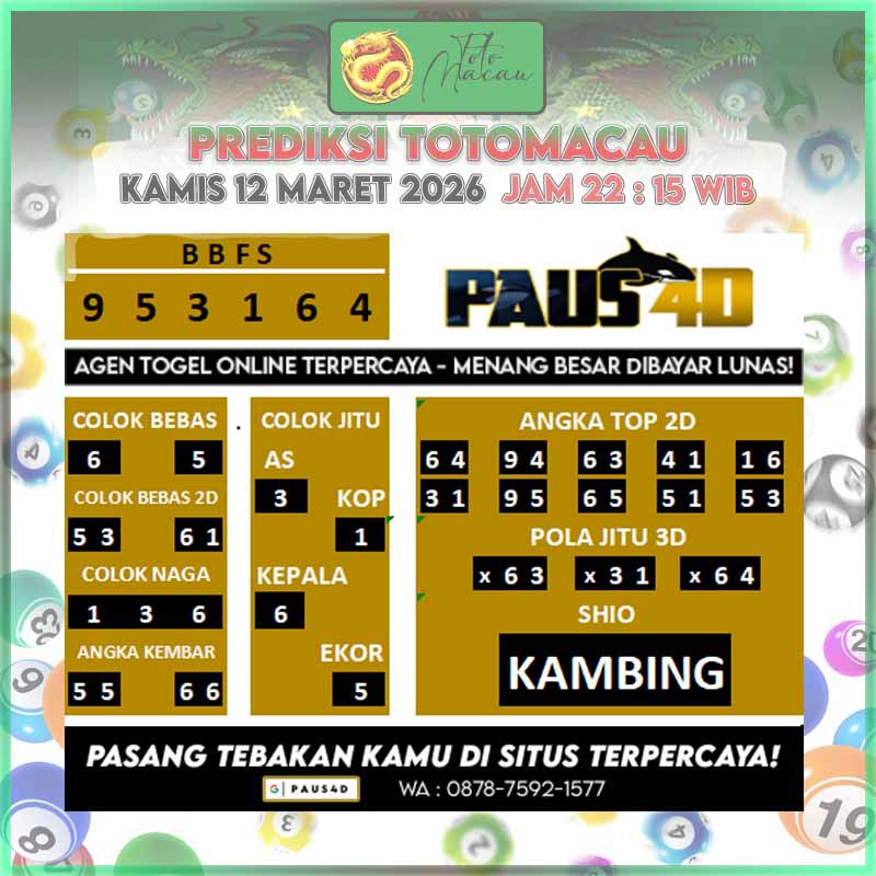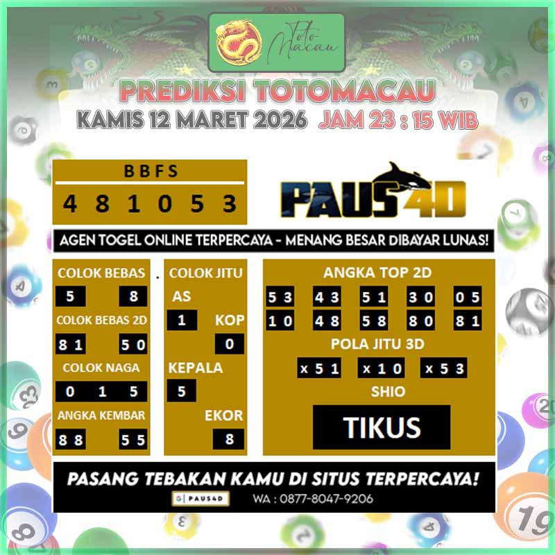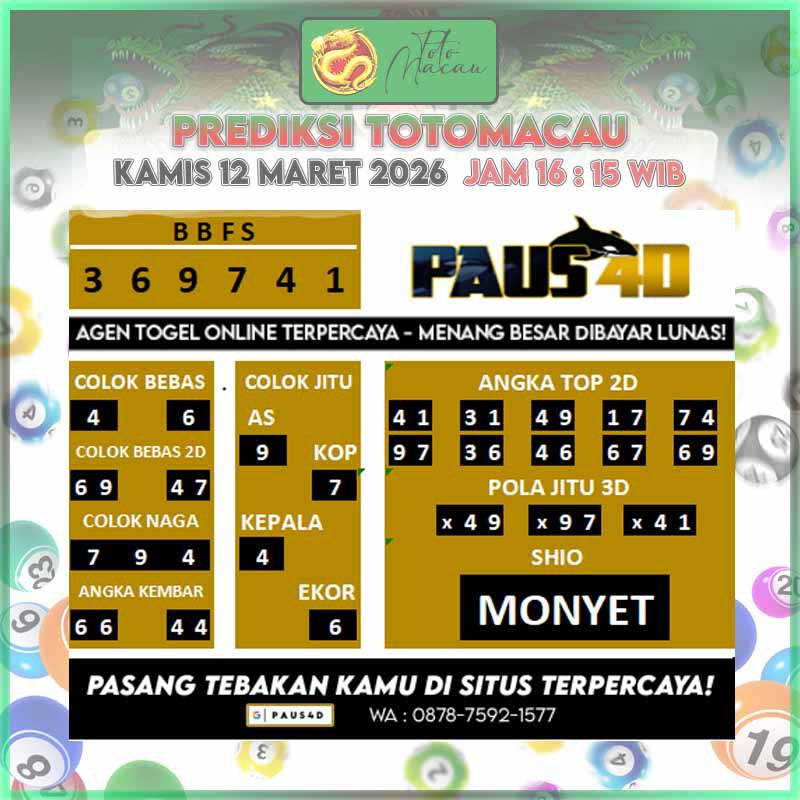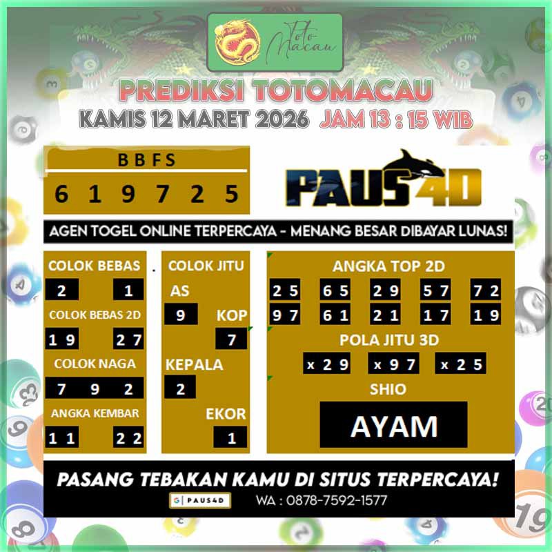 Prediksi Totomacau Jitu Hari Ini | PAUS4D 12 Maret 2026