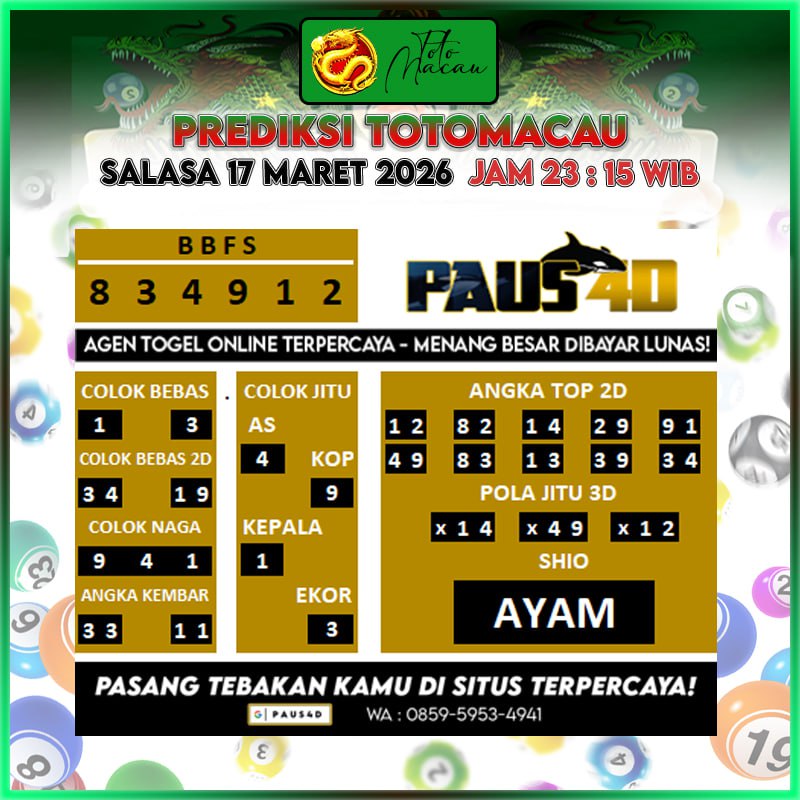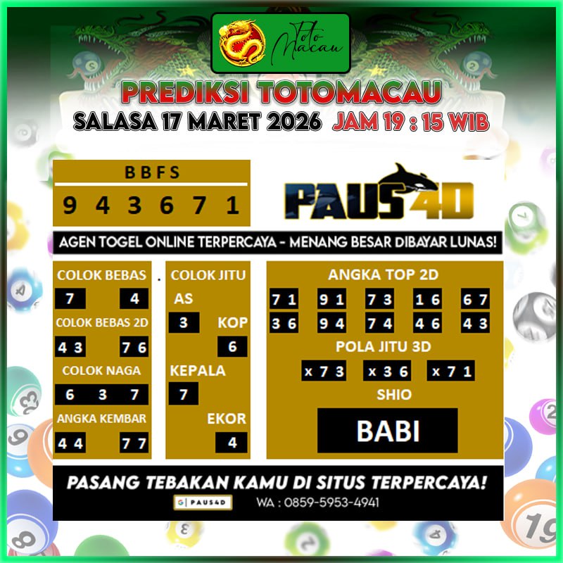 Prediksi Totomacau Hari Ini 17 Maret2026