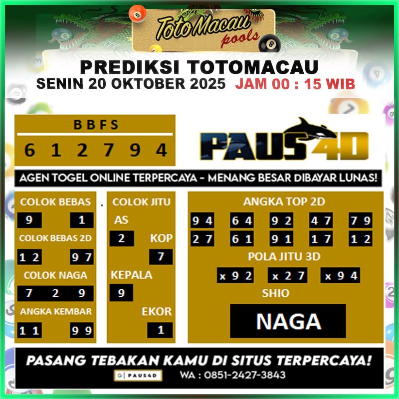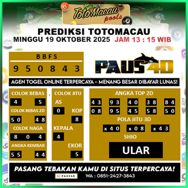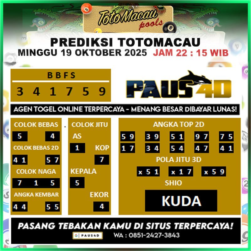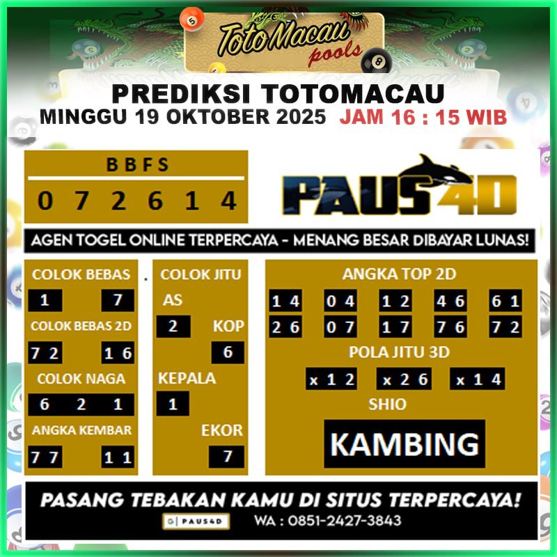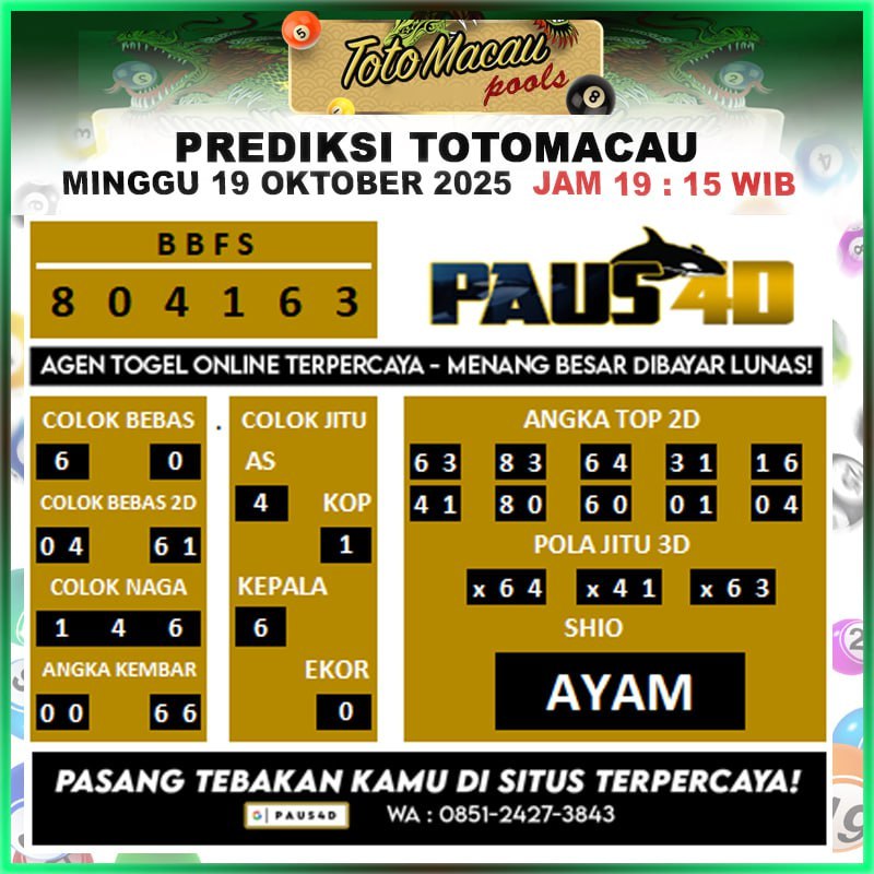 Prediksi Totomacau Hari Ini 19 Oktober 2025
