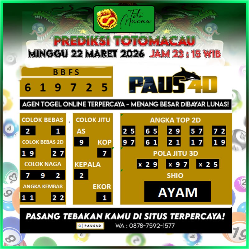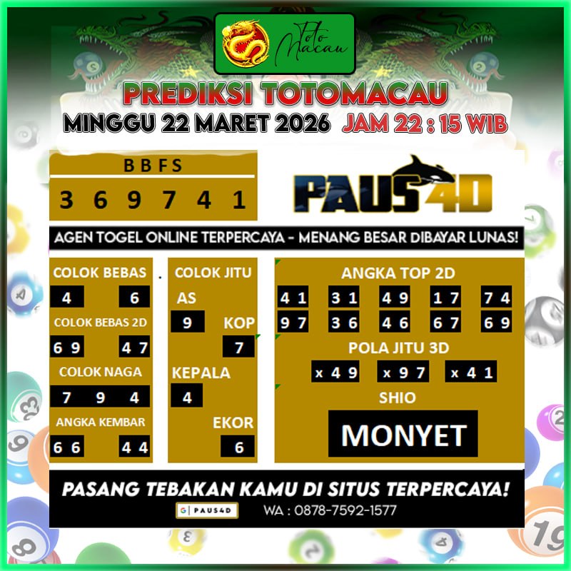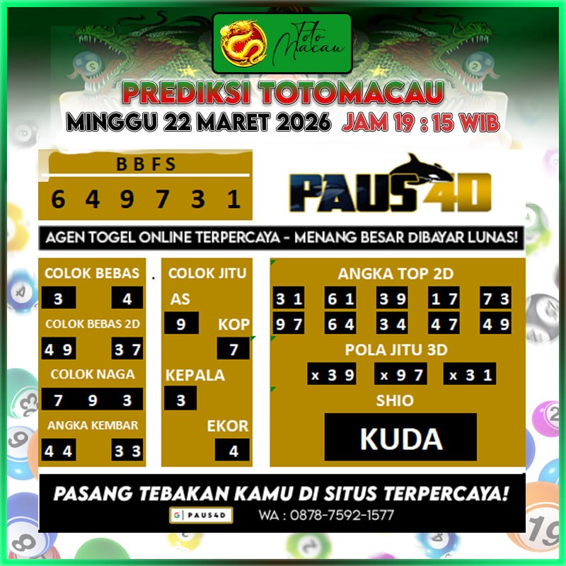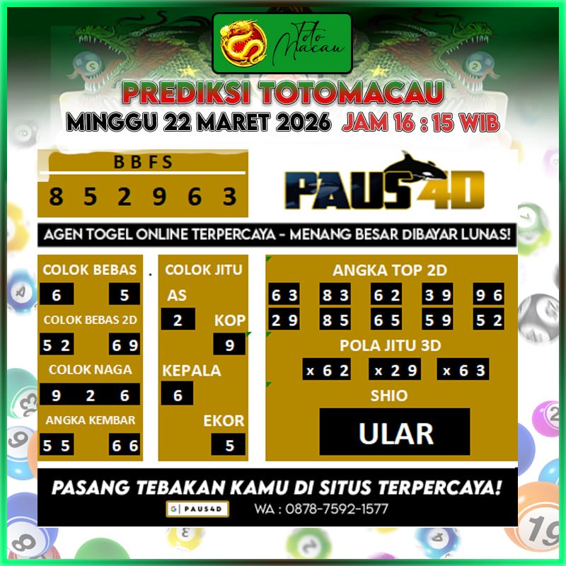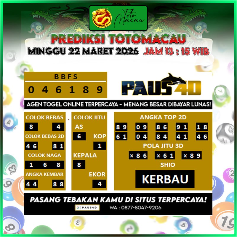 Prediksi Totomacau Hari Ini 22 Maret2026