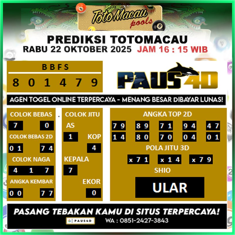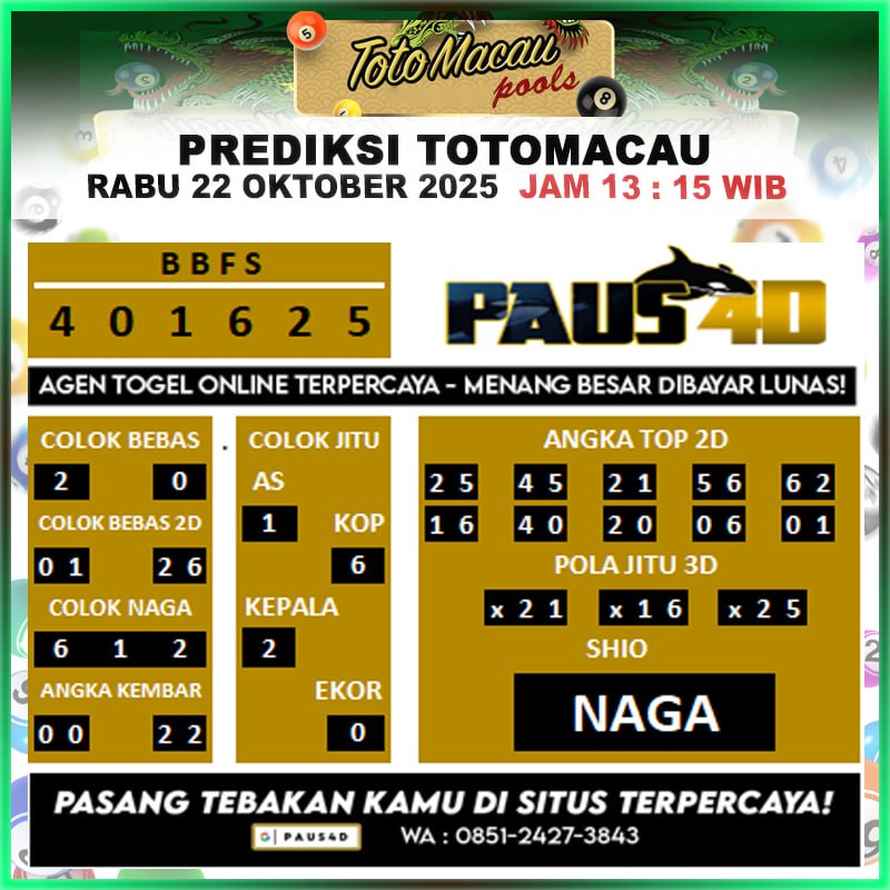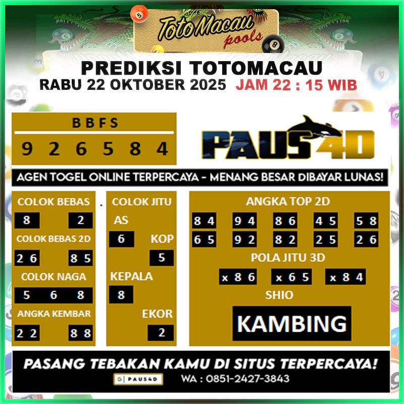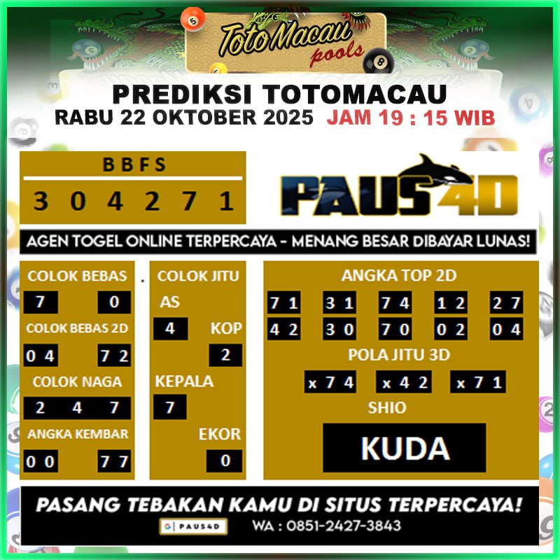 Prediksi Totomacau Hari Ini 22 Oktober 2025